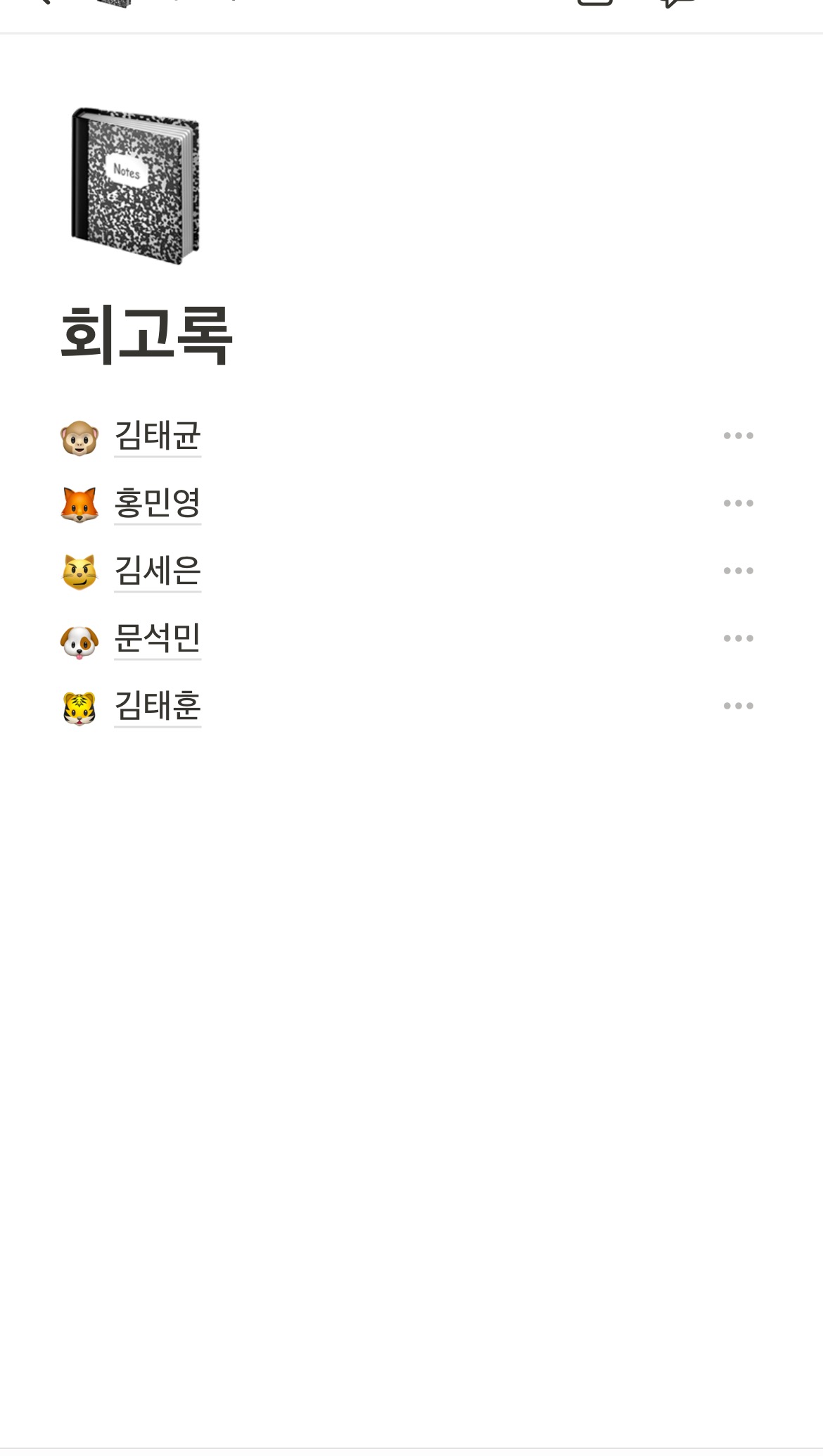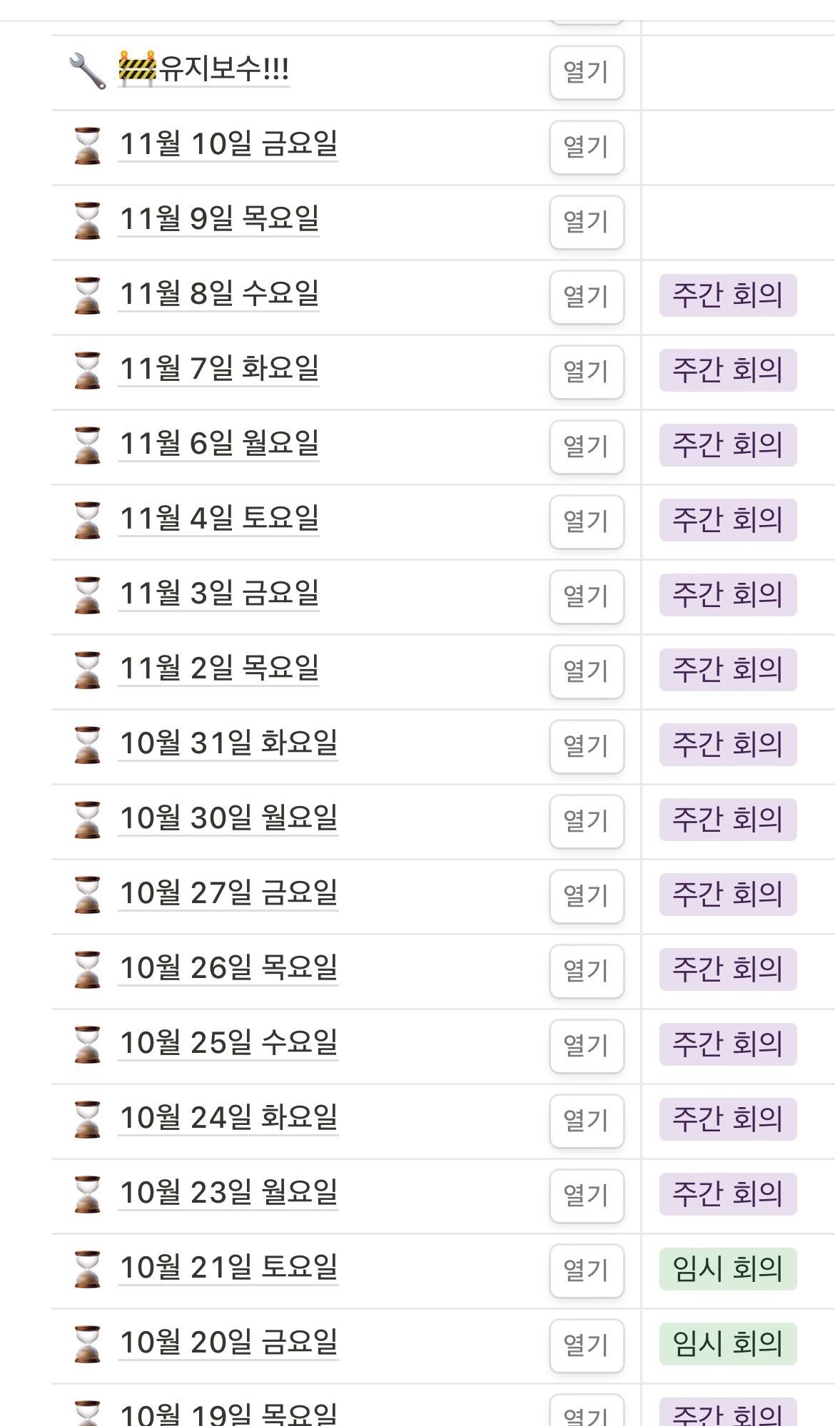 거의 매일 회의하며 작성한 회의록과