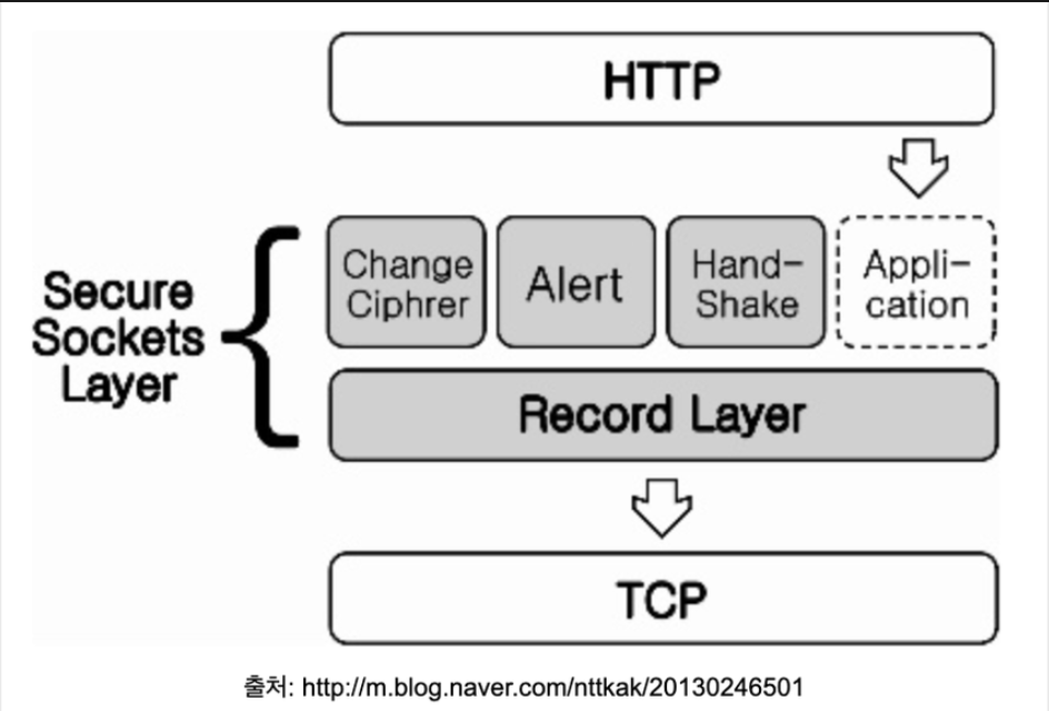 - Application layer와 Transport Layer 사이에는 Application Layer의 데이터를 암호화/복호화 해주는 SSL/TLS 라는 레이어가 있다.