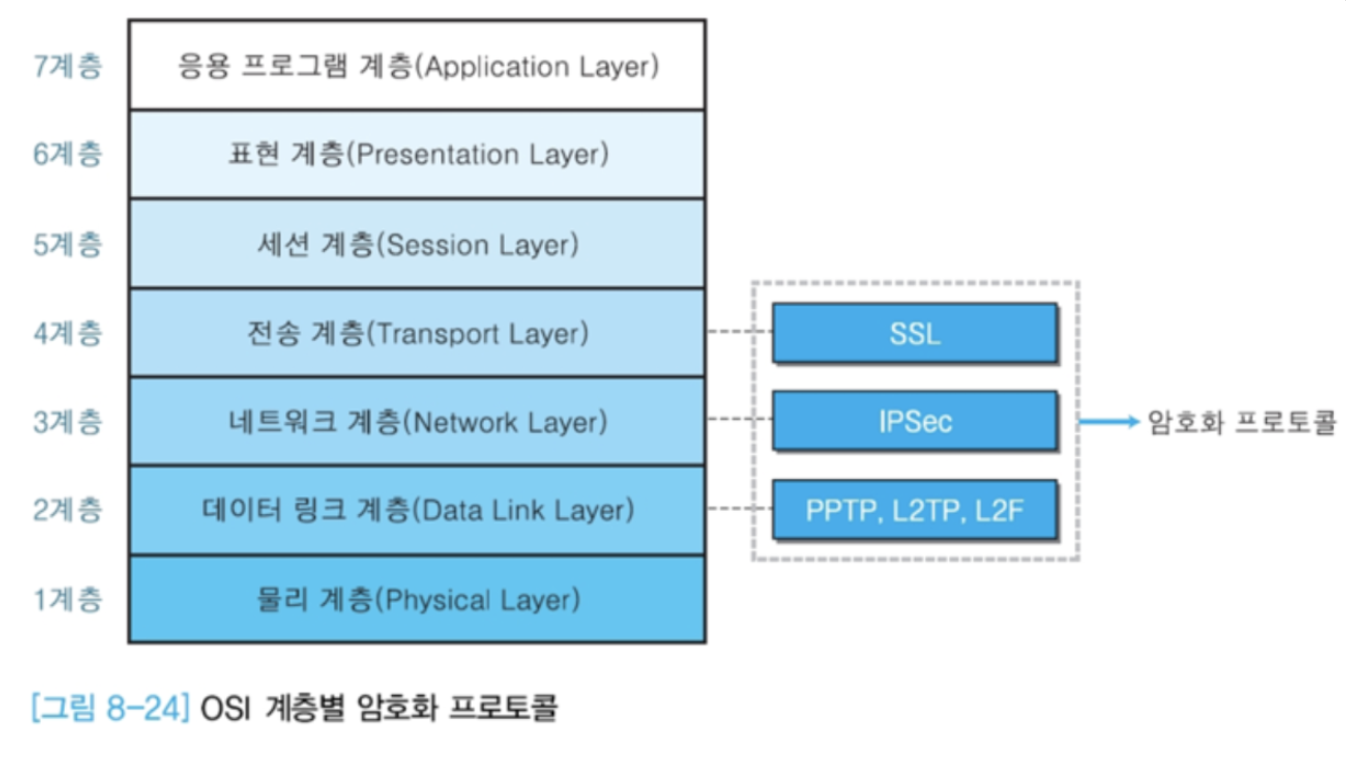 - SSL/TLS: 전송 계층에서 작동하여 애플리케이션 계층의 데이터를 보호.